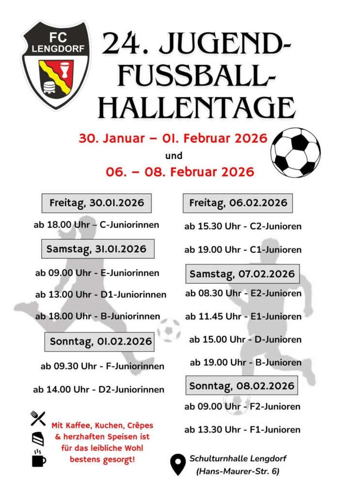Am 1. Wochenende 30.01.-01.02.2026 sind unsere Nachwuchs-Mädels im Einsatz, am 2. Wochenende von 06.-08.02.2026 dürfen dann die Jungs ihr Können zeigen!